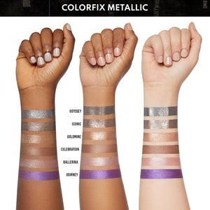 An award-winning, multi-use, long-wearing, waterproof, and buildable high-pigment color for eyes, face and lips. Colorfix Metallics deliver full coverage with a pearly luster for adding a subtle sheen.