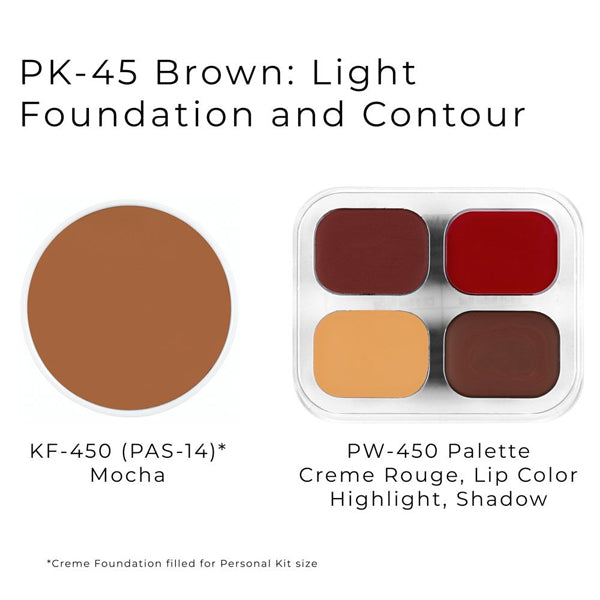 This economic bundle is ideal for classroom environments or anyone who wants a general introduction to products for stage productions. Personal Kits include one creme foundation and a 4-color mini palette with contour, blush, highlight, and lip color. Also comes with setting powder, an eyebrow pencil, flat brush, powder puff, latex sponge, and stipple sponge. A fantastic option for students and artistic performers, dance recitals, and choral groups too!