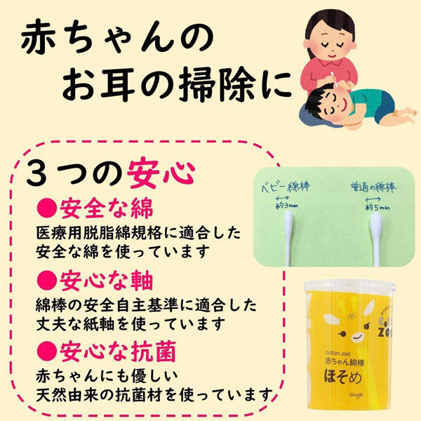 Specialty swabs from Japan in a handy storage container with an adorable Cotton Zoo animal design.
